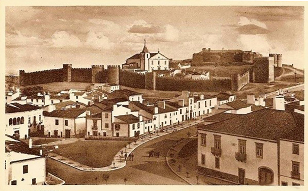 El castillo y su cerca fue edificado posteriormente, en tiempos de D. Dinis a finales del siglo XIII, en torno a 1290. Por esa época, siendo alcaide Soeiro Pires, ya estaba concluida la cerca de la villa, que se abría por tres puertas flanqueadas por torreones, la del Sol (o de la Traición), la de Estremoz y la de Évora.