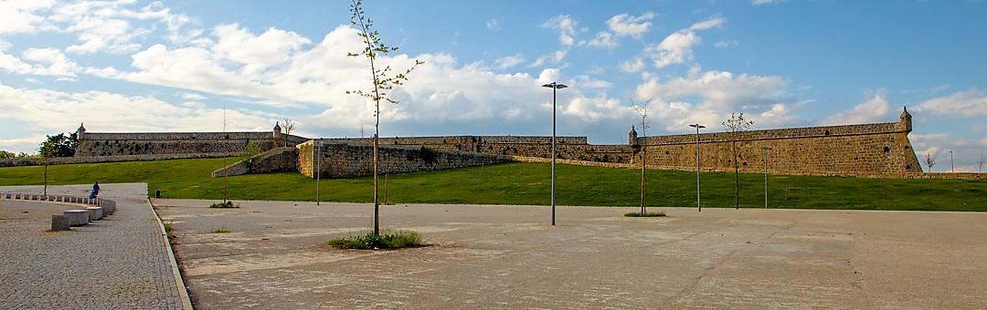 De la antigua FORTIFICACIÓN ABALUARTADA que envolvía la ciudad, se conservan tramos de las cortinas, en una extensión de unos 400 m, entre el ángulo de la Rua del Sol con la Rua 25 de abril, lugar en que se implanta el baluarte de la Amoreira, y el final de la Av. de la Muralla, integrando el Postigo de las Caldas.