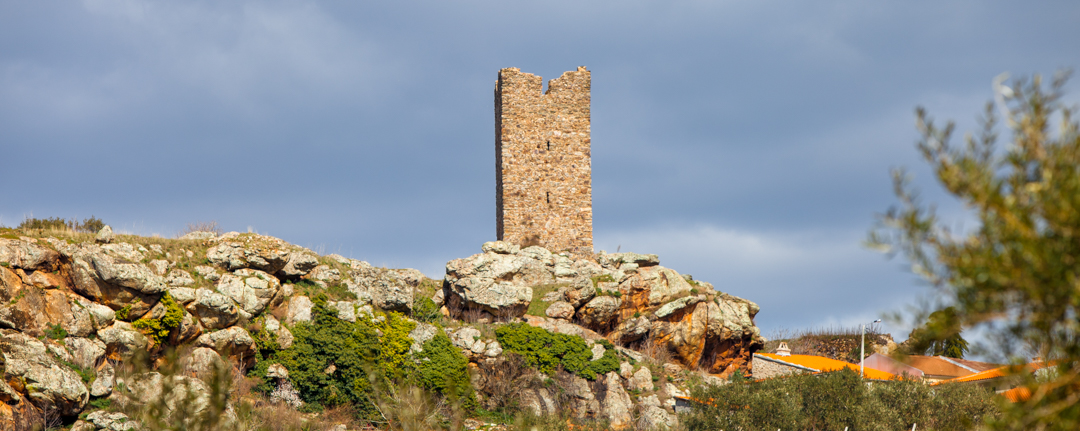 En el centro de la plaza de armas se levanta la torre del homenaje, de planta en rombo con lados de dimensiones variables – entre 7 y 8 metros de ancho -, de muros espesos, en aparato simple de pizarra de cuarzo con mortero. Internamente se dividía en tres pisos. En los alzados este y sur, se abren ventanas en cantería. Al oeste se abre la única puerta, rectangular, a unos tres metros de altura, también en cantería. Primitivamente se accedía a la torre mediante una escalera de madera desmontable.