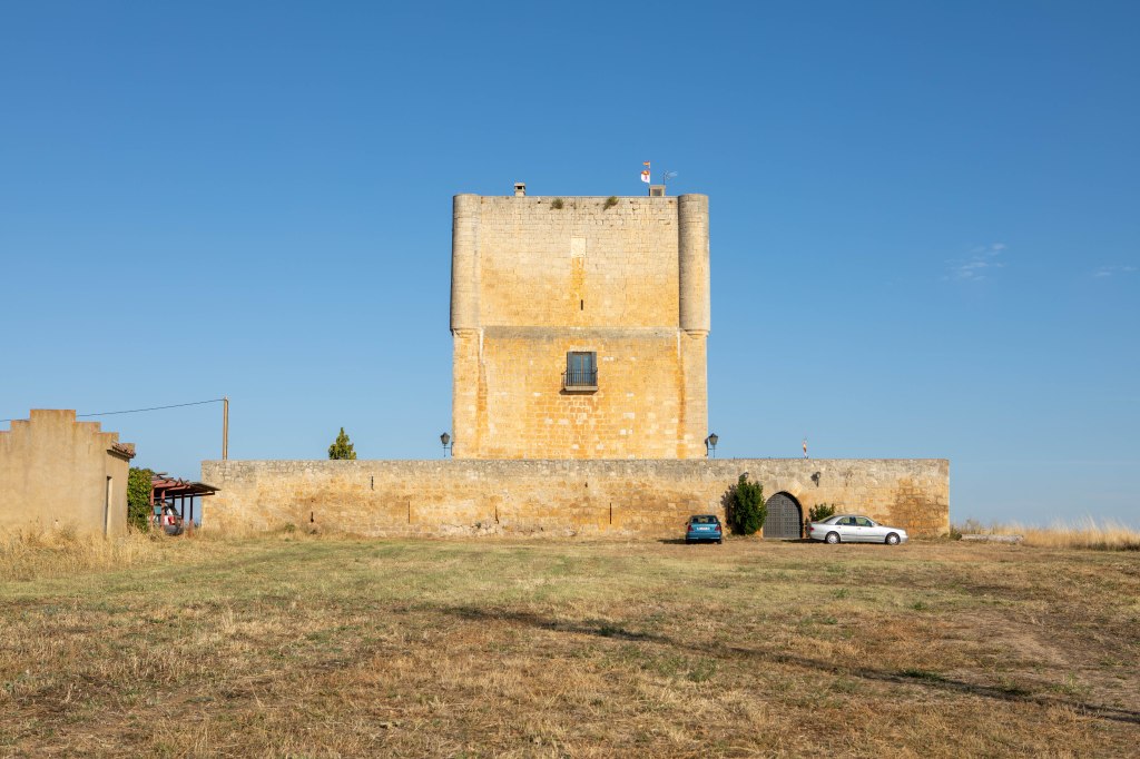 Este pequeño castillo o gran torreón señorial (como se quiera mirar) se encuentra a las afueras del casco urbano dominando las llanuras. Se construyó a mediados del siglo XV por Gonzalo Muñoz de Castañeda (bueno quien la mandó hacer). Por sus muros desde entonces han pasado diferentes familias: el conde de Osorno, el Marqués de Villatorre y la familia Castañeda. De hecho, de esta última son los escudos que decoran todos los frentes de la parte alta de la fachada de la torre. Ha sido parcialmente restaurado y actualmente es una vivienda de un particular.