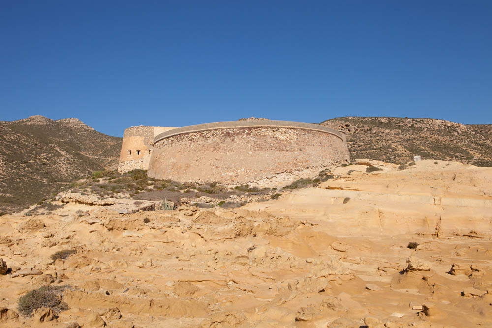 Como veremos en el siguiente post en el siglo XVI se había construido una torre-fuerte (la torre de los alumbres) para proteger las minas de plomo y oro del valle de Rodalquilar de las incursiones piratas que estaban a la orden del día. El problema es que se situó a más de un kilómetro de la costa, por lo que era de escasa utilidad para impedir los desembarcos piratas en la entonces llamada playa de los Castillejos y hoy Playazo de Rodalquilar.