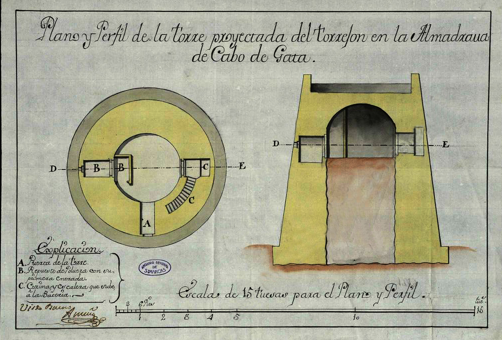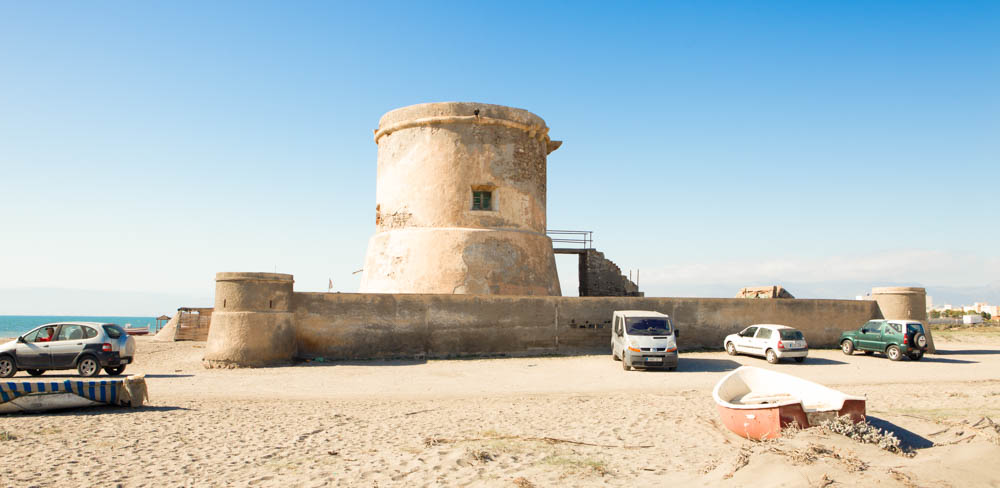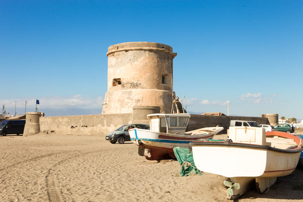 El bonito pueblo de San Miguel del Cabo de Gata, nace en el siglo XVII como un pueblo de pescadores, la almadraba y las salinas. Y creció junto a una Torre (Torrejón del Cabo de Gata), construida precisamente para la protección de esta actividad económica. Pero esta primera torre quedó totalmente arruinada por un terremoto en 1658. Con ello un asentamiento estable de población era inviable ante las continuas incursiones piratas