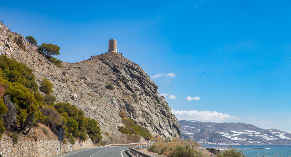 Otra torre del sistema defensivo levantado tras la conquista. También llamada Torre del Cantor o de la Mamola, se eleva sobre un promontorio rocoso que separa esta zona costera del control del castillo de Baños. Desde ella se controla toda la zona de La Mamola, donde se localizaba una pesquería en época nazarí.