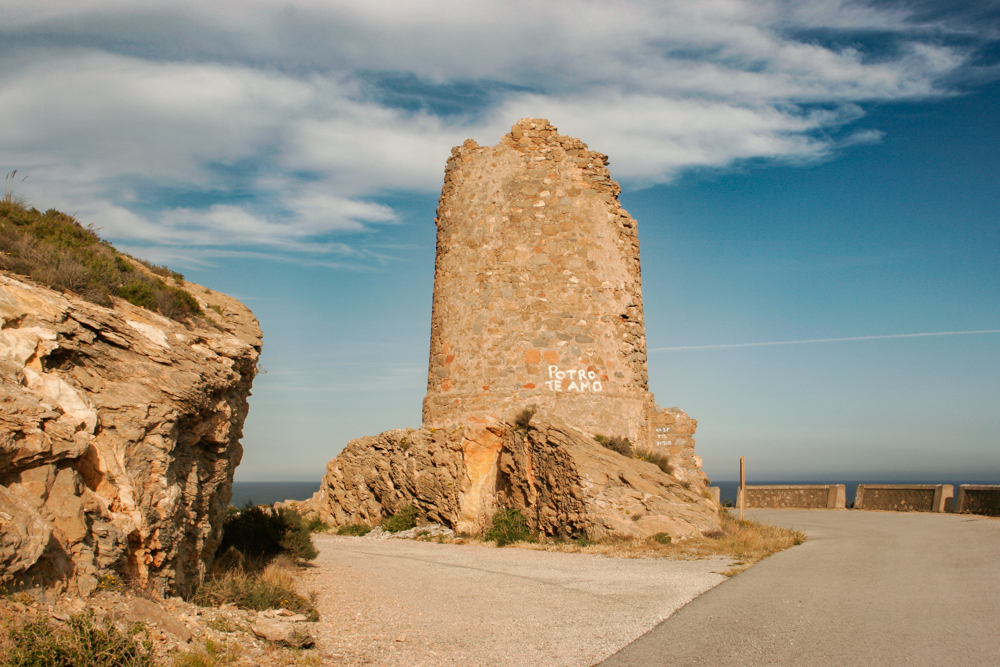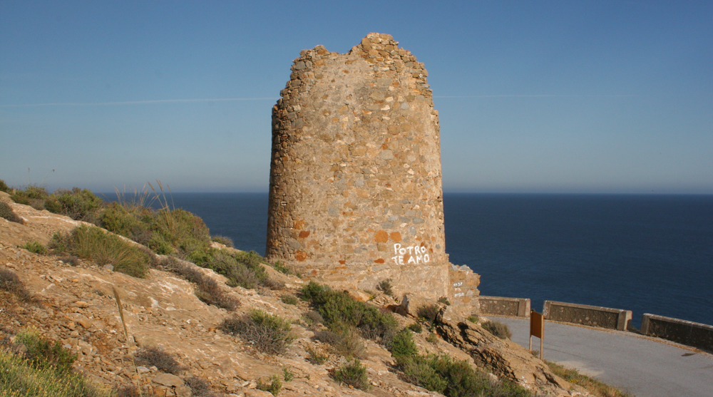 La torre del Zambullón se ha conservado en unas curvas abandonadas de la antigua carretera N-340 que, con su trazado, mutiló la batería que se había construido en el siglo XVIII.