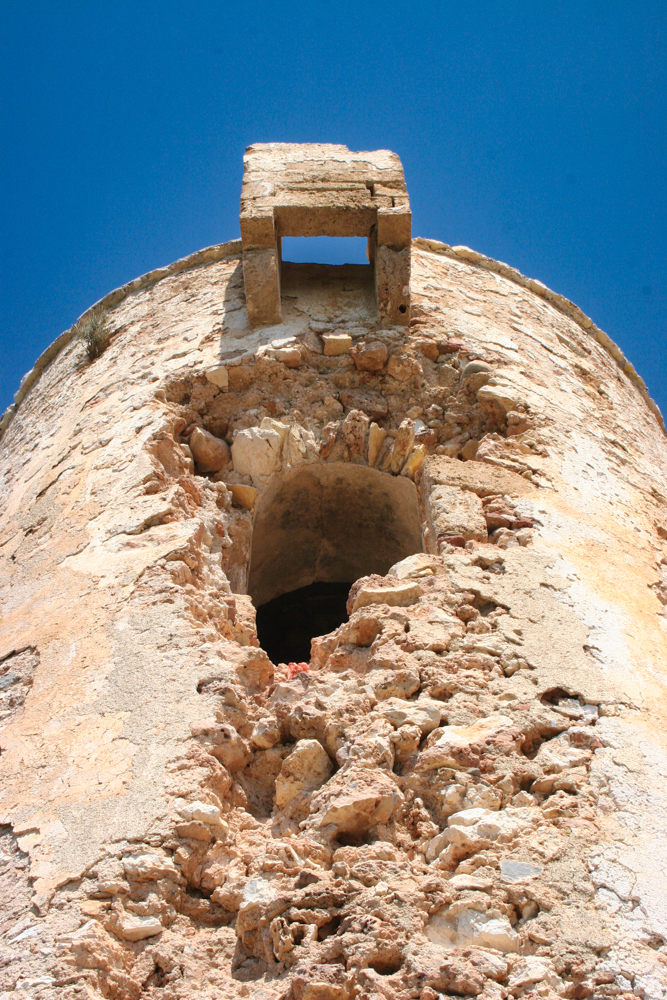 Tiene forma troncocónica con un poco de éntasis. Su perímetro supera los 20 metros y su altura es de unos 11 metros. Presenta un cuerpo inferior macizo y sobre éste se construye una cámara, cuyo acceso se abre en el lado sur, a unos 6 metros del suelo; también presenta otras dos aberturas en los lados este y oeste. en su interior se dispondrían la chimenea (con su correspondiente salida de humos en el terrado) y la escalera de salida a la azotea que se cubre en su tramo final con un cuerpo de obra, en el lado norte, sobresaliente del pretil de la azotea. Esta última, además de lo ya indicado conserva muy bien el matacán defensivo sobre el acceso. Su obra es de mampostería, revocada posteriormente. Se utiliza el ladrillo en algunos elementos, entre ellos el hueco de acceso.