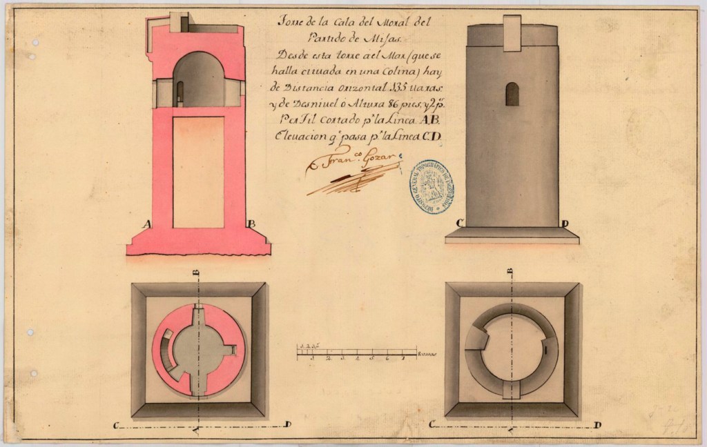 En otro informe emitido en 1787 sobre el estado de las torres de la costa entre Fuengirola y Conil extraemos los siguientes datos referidos a sus funciones y dotaciones militares: “A corta distancia de la antecedente Torre Batería de la Cala del Moral, en una altura está situada la torre nueva de la Cala del Moral que sólo sirve de vigía y repetir las señales”.