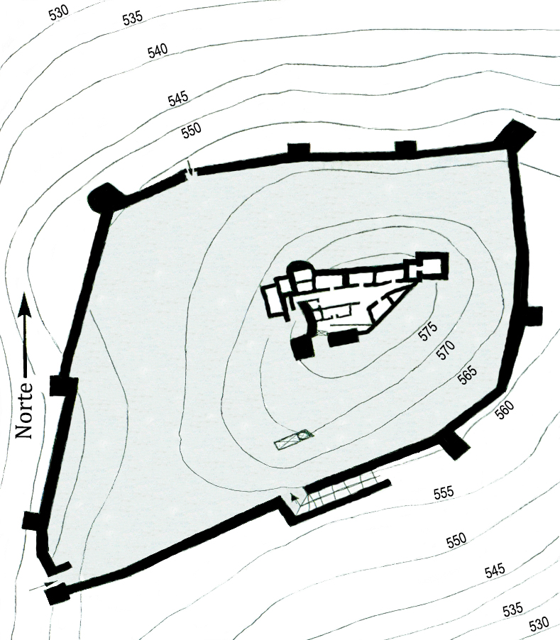 De su estructura se conservan parte de sus murallas en buen estado. Igualmente, se conserva la llamada Torre de la Reina, documentándose sus aposentos, así como un pozo. Los muros son de mampostería de piedra caliza careada con un mortero rico en cal. Se observan tres accesos: el Sur, en recodo, conserva una interesante barbacana; el Oeste, de acceso directo, conserva el arranque del arco, y en el Norte, existe un pequeño portillo muy pequeño.