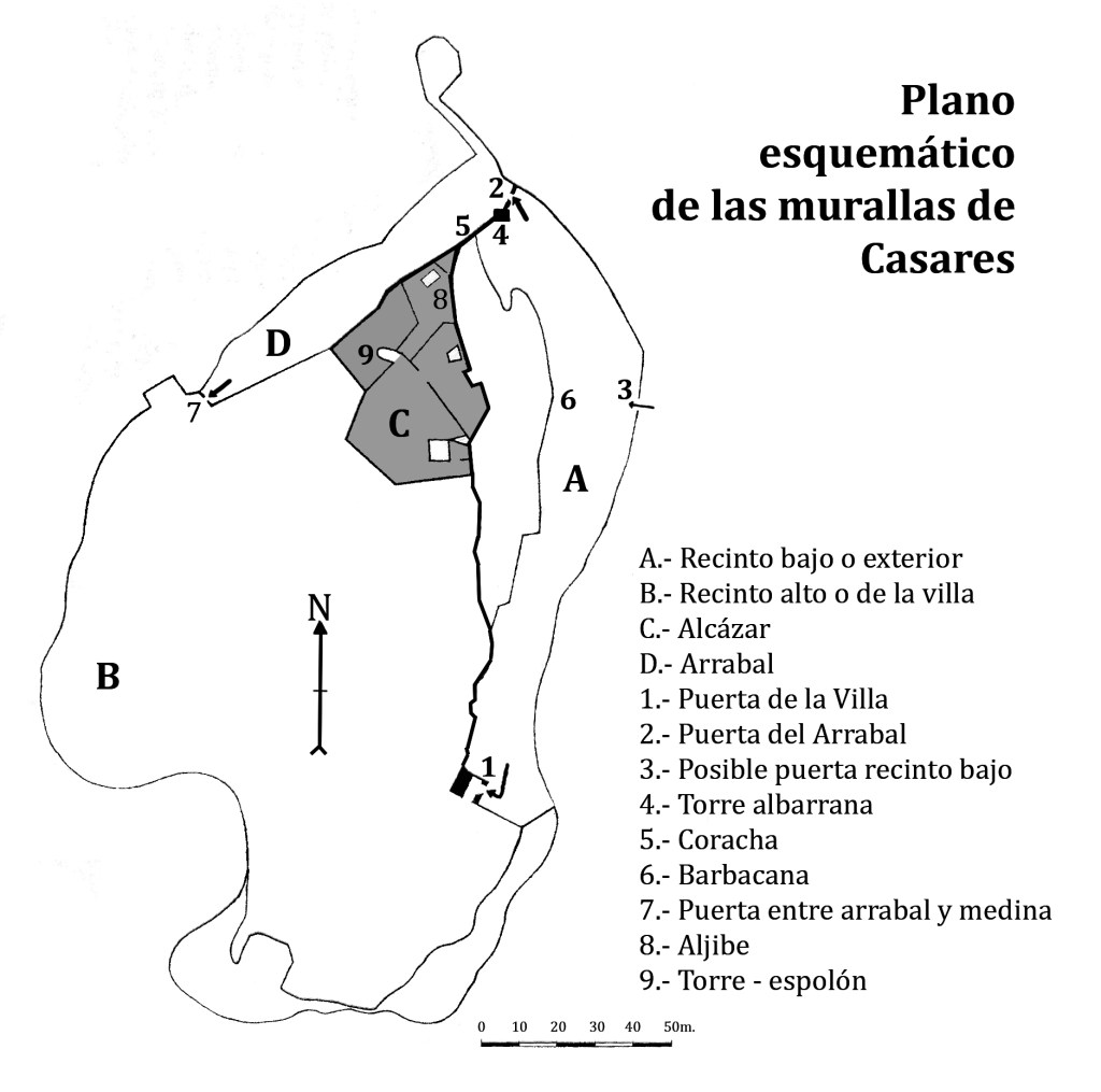 El cuanto al recinto del arrabal delimita la peña por el flanco noroeste y los muros del alcázar y disponía de su propia puerta.