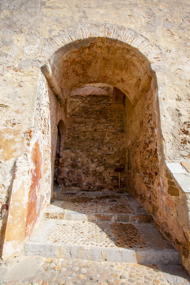 Una vez dentro, y en dirección a la parte más antigua, hay una puerta en recodo, una defensa más que dejaría aislado e indefenso al enemigo, y tras ella el recinto califal, con una puerta de entrada que en su parte superior mantiene la lápida fundacional del edificio.