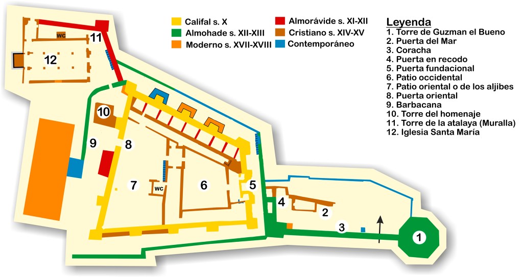 Durante la época almohade le fue añadida la coracha, que comunica el primitivo recinto con la torre octogonal albarrana.