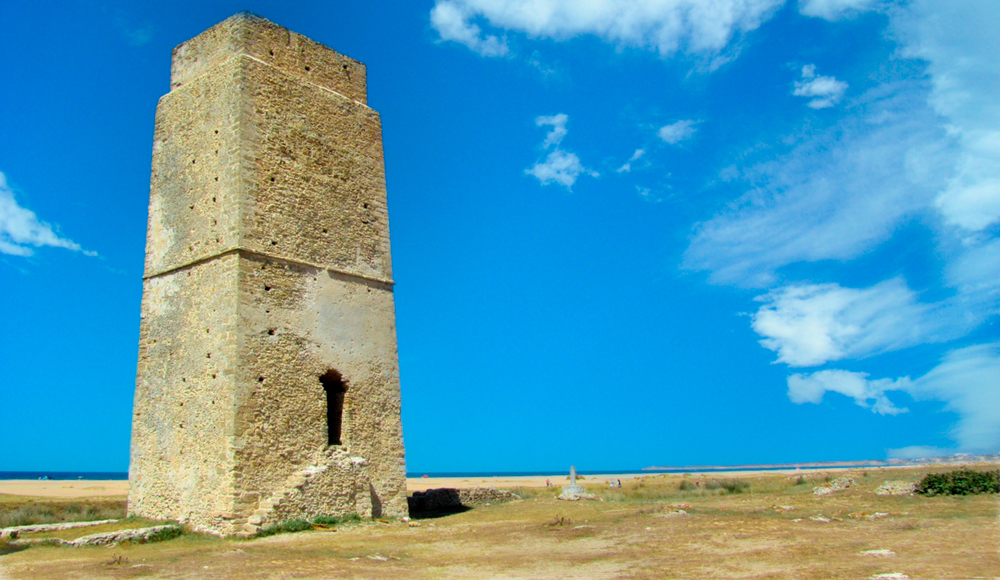 Entramos ya en la costa de Conil tras dejar el Palmar y nos encontramos con la Torre de Castilnovo o Castilobo. En Conil se construyeron cuatro torres almenara por los Duques de Medina Sidonia para proteger sus almadrabas, la torre Blanca, la torre Atalaya , la torre de Roche y esta torre de Castilnovo. Sólo se conservan estas dos últimas