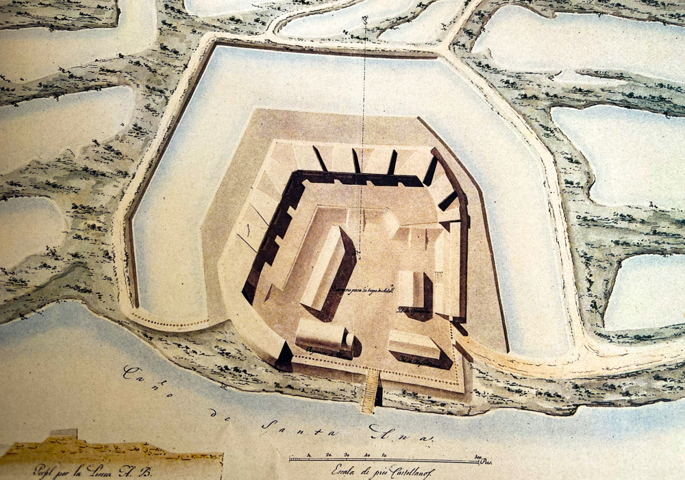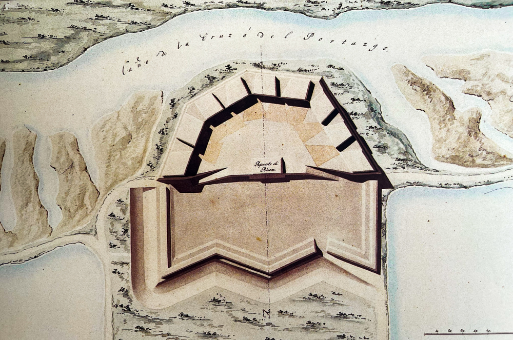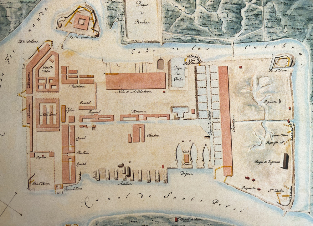 Ante el asedio francés toda la Isla fue fortificada con un complejo sistema defensivo para evitar la entrada en la Isla de las tropas napoleónicas. Se construyeron baterías para defender el Arsenal, tal como se muestra en el plano adjunto.
