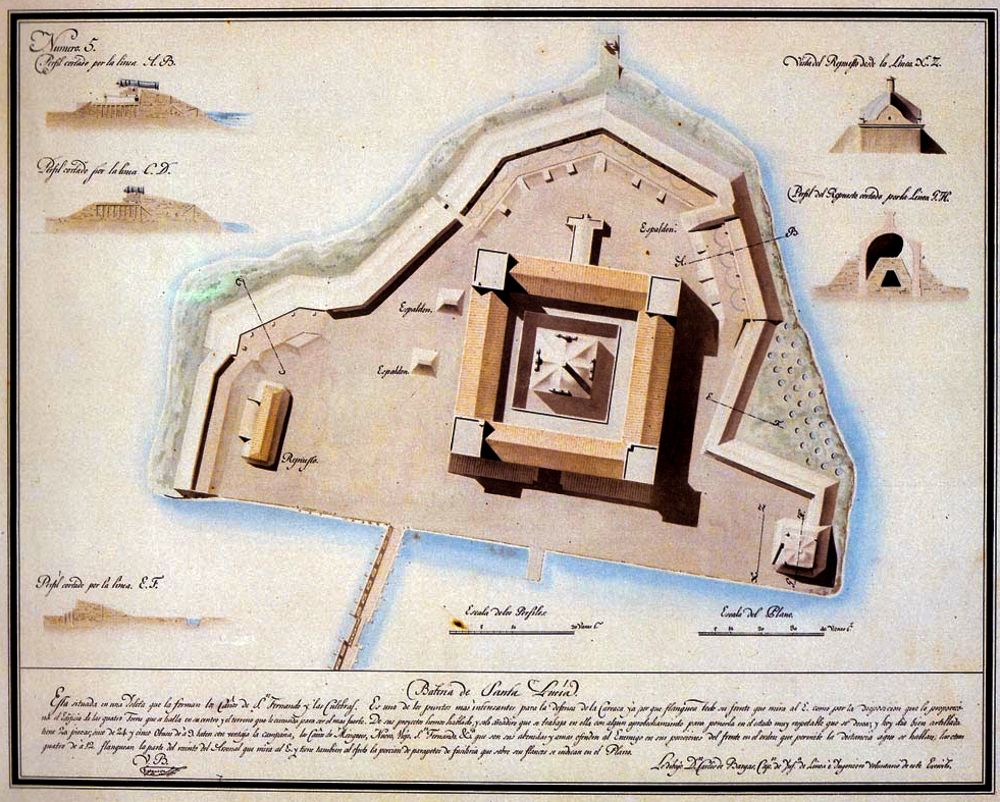En 1765 se había construido el presidio de la Cuatro Torres según un proyecto de Juan Cevada en el islote de Santa Lucía. En él estuvo prisionero don Francisco de Miranda; héroe insigne de la Revolución Francesa, de las independencias americanas y creador de la bandera tricolor de Venezuela. Miranda falleció entre sus muros el 14 de julio de 1816. Al Penal de las Cuatro Torres se le ha seguido dando uso de prisión por parte del ejército hasta hace relativamente poco tiempo.