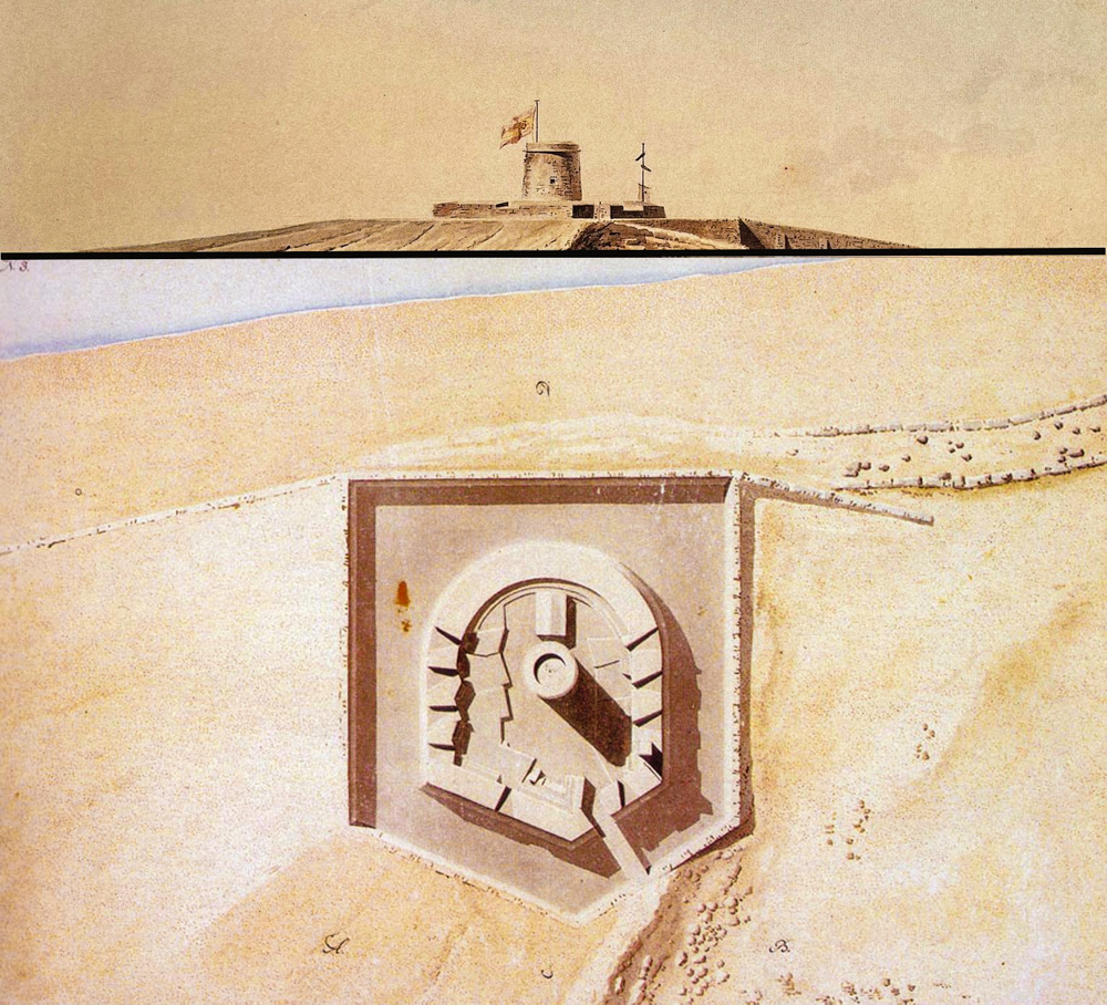 En torno a ella se construiría en la primera mitad del siglo XVIII, posiblemente en los años 20 o 30, una batería. Su frente semicircular dirigía la artillería hacia mar abierto y al mismo tiempo protegía el camino entre Cádiz y San Fernando que discurría junto a la misma. Posteriormente debió ser reformada en las actuaciones relacionadas con la llegada de las tropas napoleónicas, incorporándose el foso perimetral y modificándose el frente de tierra.