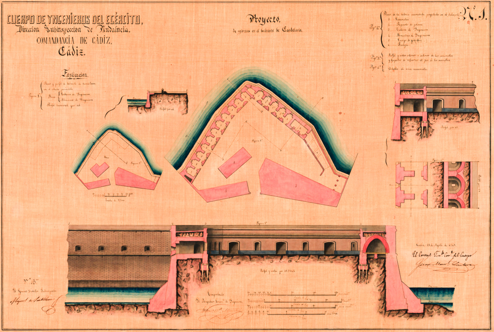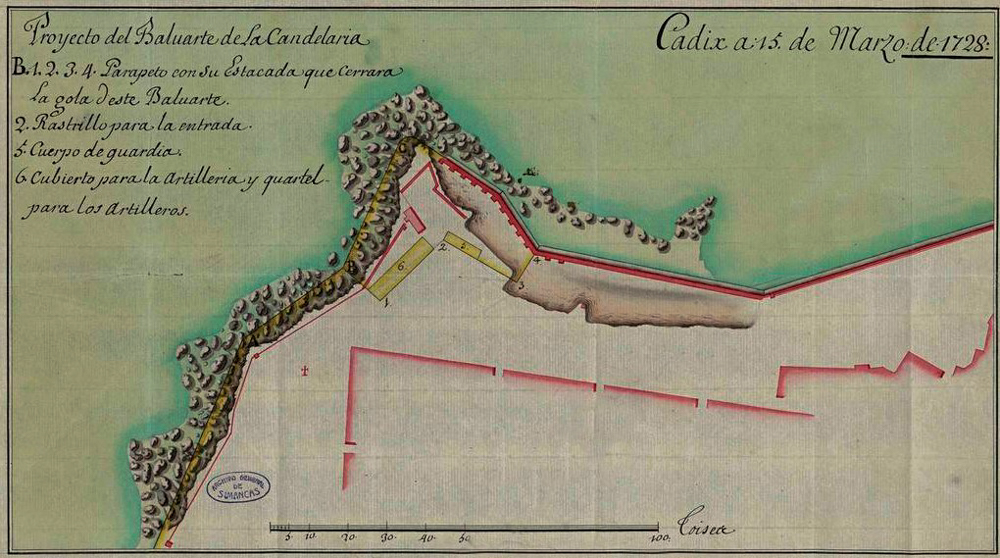 El tramo de murallas que unía el Baluarte de San Felipe con la Candelaria se construyó entre 1710 y 1712, por planificación de Ignacio Salas.