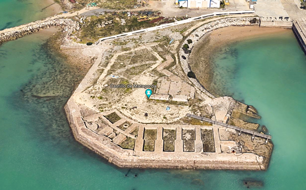 Una vez finalizado nuestro detallado recorrido por las impresionantes defensas de Cádiz (defensas de la costa andaluza 180 a 191) y San Fernando (defensas de la costa andaluza 173 a 179), damos un salto a la Bahía para situarnos en Puerto Real, cuyas fortificaciones jugaron un papel decisivo en las contiendas en la que se involucraba la Corona (ay!). La verdad es que sólo subsisten restos de las mismas. No obstante, vamos a detenernos en ellas en las próximas entradas del blog: el fuerte de Matagorda, el caño de la Cortadura, el muelle fortificado de Puerto Real y el Fuerte de San Luis. Empezamos pues por el Fuerte o Castillo de Matagorda que jugó un importante papel en todas aquellas contiendas y ataques que afectaron a Cádiz.