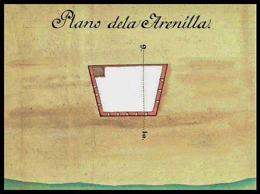 A continuación, encontramos la Batería de la Arenilla, que se encuentra en un lugar tan arenoso que la batería y sus cañones estaban en gran parte enterrados bajo la arena. De poco servía quitarle la arena porque la mucha que había alrededor era en poco tiempo acumulada por el fuerte viento sobre el reducto. Ya en 1737 Ignacio Sala propuso reemplazarla por una batería circular situada más hacia la línea de playa para evitar la acción de la arena, pero no llegó a realizarse.