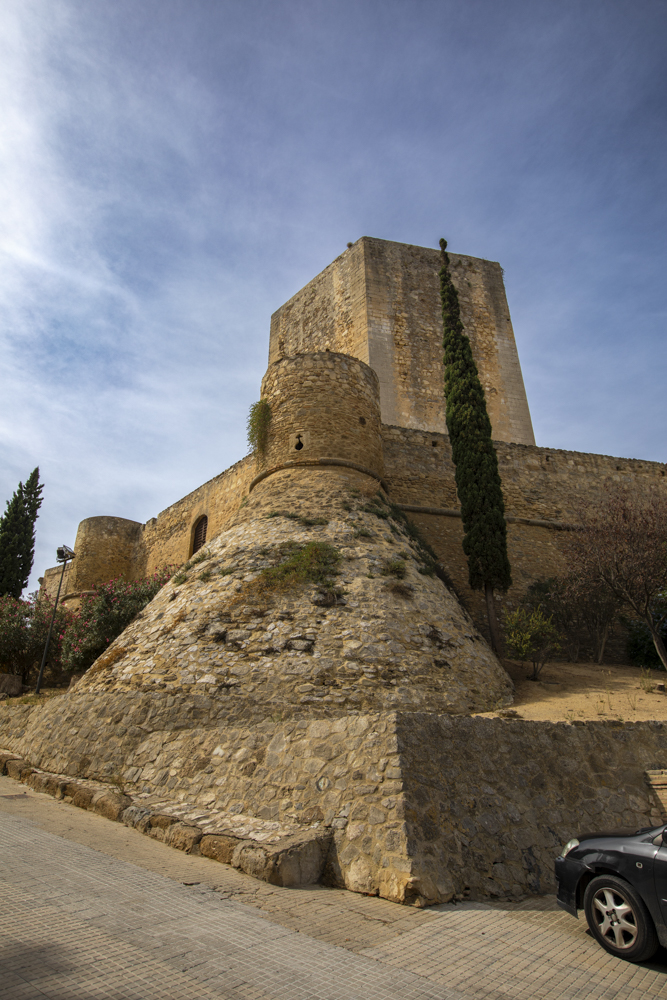 De entre las torres que rodean sus muros, en el ángulo que mira al mar, destaca la poderosa Torre del Homenaje, hexagonal imitando a lo Torre de Guzmán del Castillo de Tarifa. Tiene una altura de 40 varas (unos 33,5 metros).