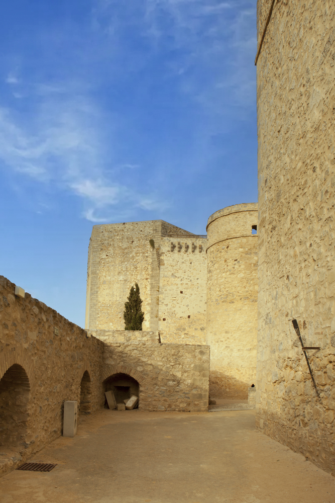 Presume el Castillo de Santiago de ser el más grande de la provincia. Y posiblemente sea así. Tiene planta cuadrada, con una barbacana exterior y torres de planta cuadrada en las esquinas y de planta circular en la mitad de sus lienzos, todas de unos 20m. de altura.