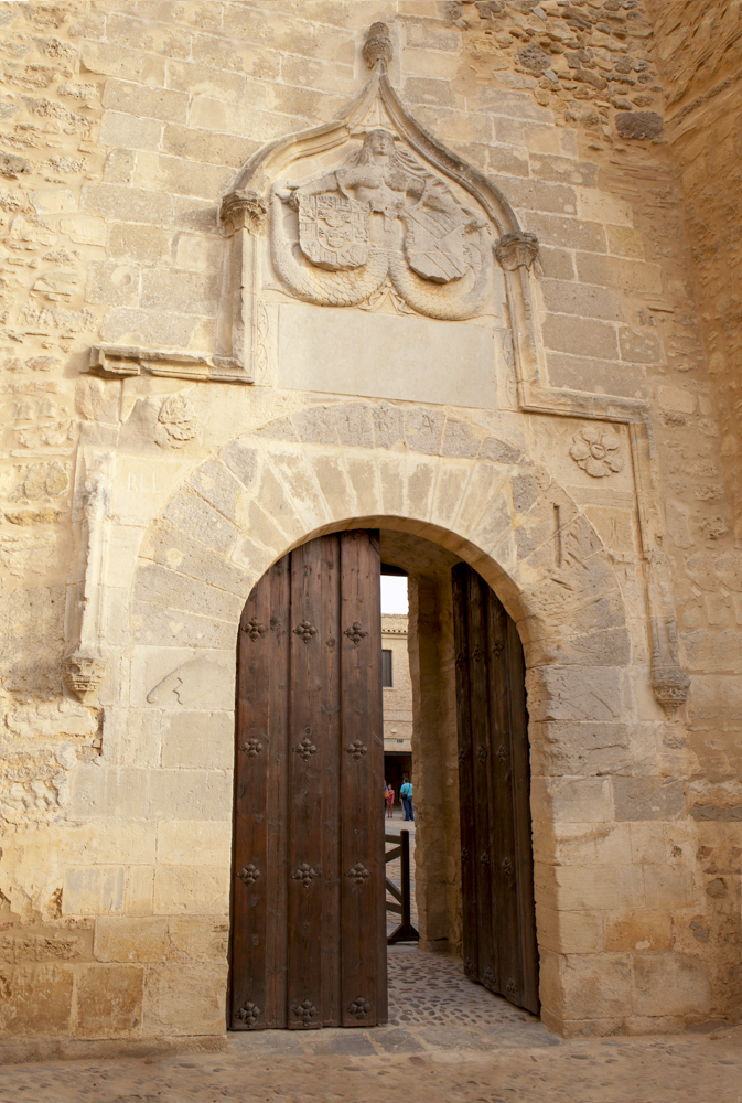 La puerta de acceso original al castillo es la llamada Puerta de Santiago, orientada hacia el pueblo, que disponía de un puente levadizo. Actualmente se accede por una puerta orientada a la Plaza del Castillo que se abrió posteriormente.
