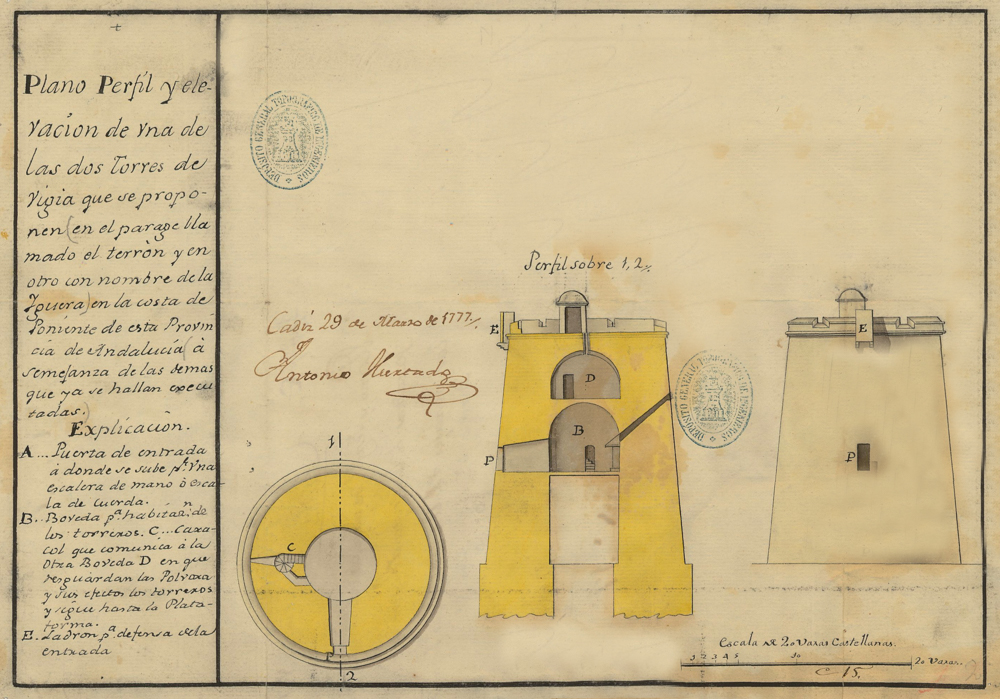 Ante los continuos ataques turcos y berberiscos o anglo-holandeses, en 1576 Felipe II toma la decisión de poner en marcha la construcción de una cadena de fortificaciones tipo “torres almenaras” en el litoral atlántico andaluz, desde Gibraltar a la frontera portuguesa.