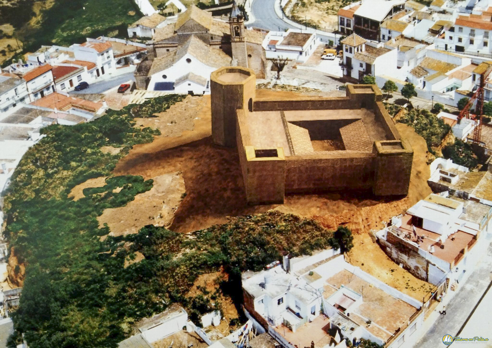 Originalmente en el siglo XIII existía una torre exenta de planta poligonal sobre el cerro a la izquierda del río Tinto.