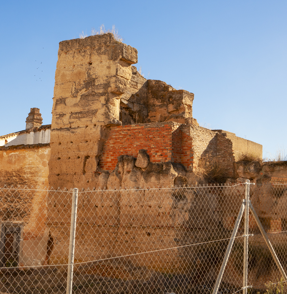 Todo el conjunto fue ejecutado en tapial, con encofrados de cajón corrido en los muros y partido en las torres. Apenas si se utilizó el ladrillo, sólo en las bóvedas del interior de las torres y en refuerzos puntuales de estas. Todos los muros y torres estuvieron rematados por almenas; sin embargo, no nos haya llegado ninguna información que nos dé certeza de ello. Pero por qué dudarlo.